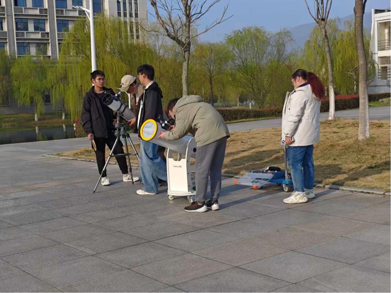 3月21日,春分节气到来之际,在昼夜平分、万物生发的美好时节,由大学生心理健康教育与服务中心主办,大学生天文爱好者协会、数学与统计学院、物理与天文空间学院心理健康工作站联合承办的“春分踏青·不负春光”主题活动在数理学院楼下温情举行。数十名同学齐聚春日黄昏,在专业望远镜中仰观天象,于星辉流转间感悟节气智慧,在静谧苍穹下寻得内心安宁。