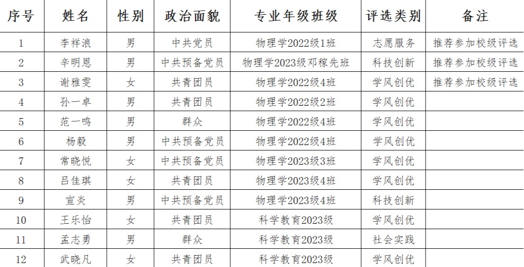 公示期间如有异议,可通过当面来访、电话、邮件等形式向物理与天文空间学院反映。