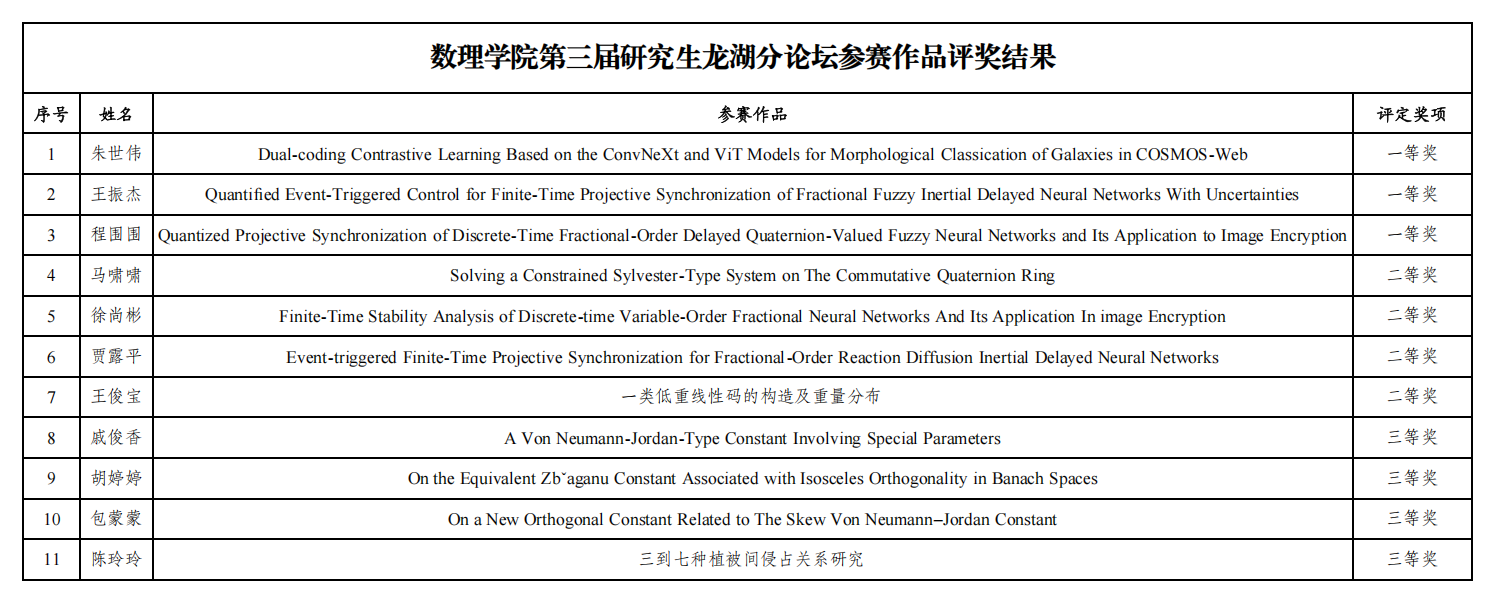 数理学院关于第三届研究生龙湖分论坛参赛作品评奖结果的公示
