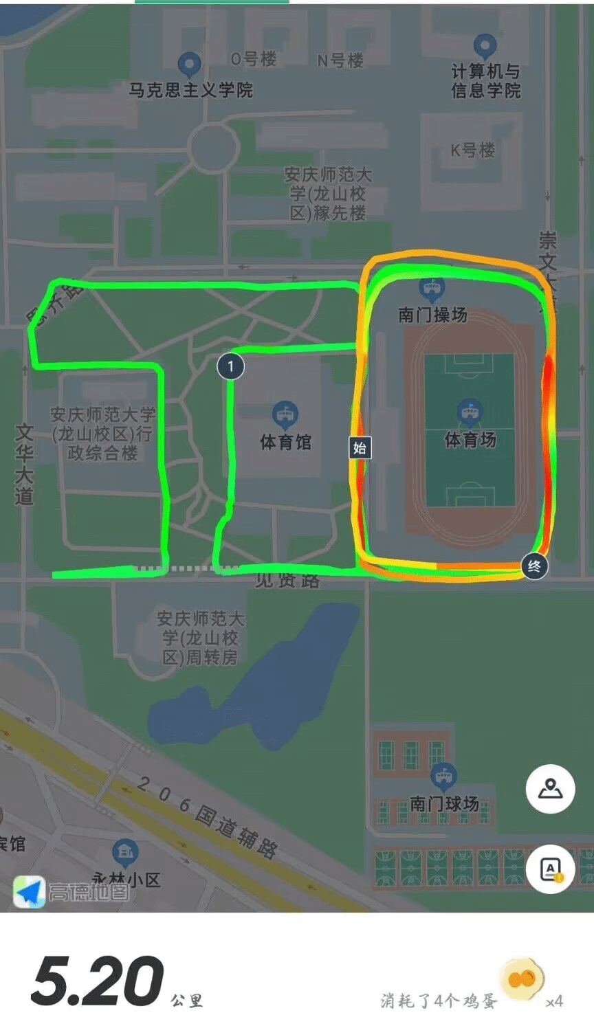 下午5点,学生们在南田径场集合后,集中完成热身运动。随后由退役复学学生、数学与应用数学专业2020(2)班的陈旭作为活动的领跑队长,带领学生们以南门操场为起点,途经体育馆、行政楼等地,在校园内跑出“520”的数字图案,跑步过程中,同学们排列整齐、步伐一致、精神饱满。