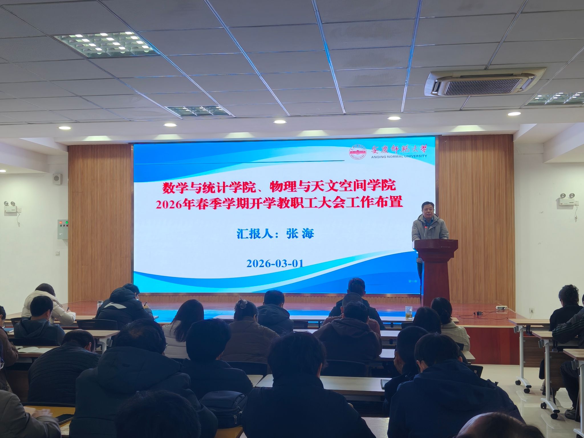 张海传达了学校2026年工作部署会会议精神,并对学院2026年重点工作进行了详细布置。他表示,物理与天文空间学院要紧密围绕学校发展战略,对标博士点申请的基本条件和更高标准,持续优化学科布局,强化学科特色,提升学科核心竞争力。他强调,要进一步加强有组织的科研,鼓励跨学科交叉融合,力争在高水平科研项目和标志性成果上取得新突破;要持续深化教育教学改革,完善人才培养体系,着力提升学生的创新实践能力和综合素质;要加强高层次人才引进和青年骨干教师培养,打造一支结构合理、素质优良的教师队伍。